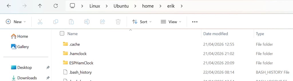 We need only the ESPHamClock folder so copy it to \\wsl.localhost\Ubuntu\home\{your-username} using the Windows file manager.